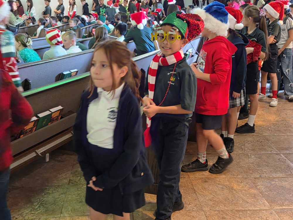 From classrooms students went to the church for weekly school mass on Friday