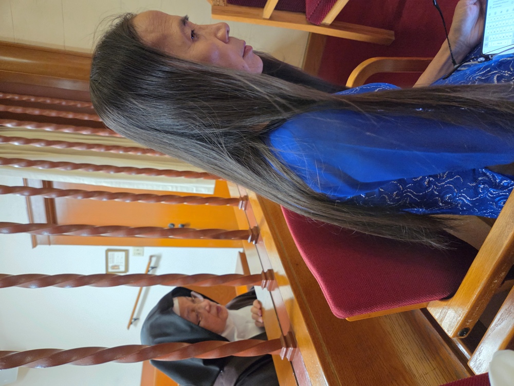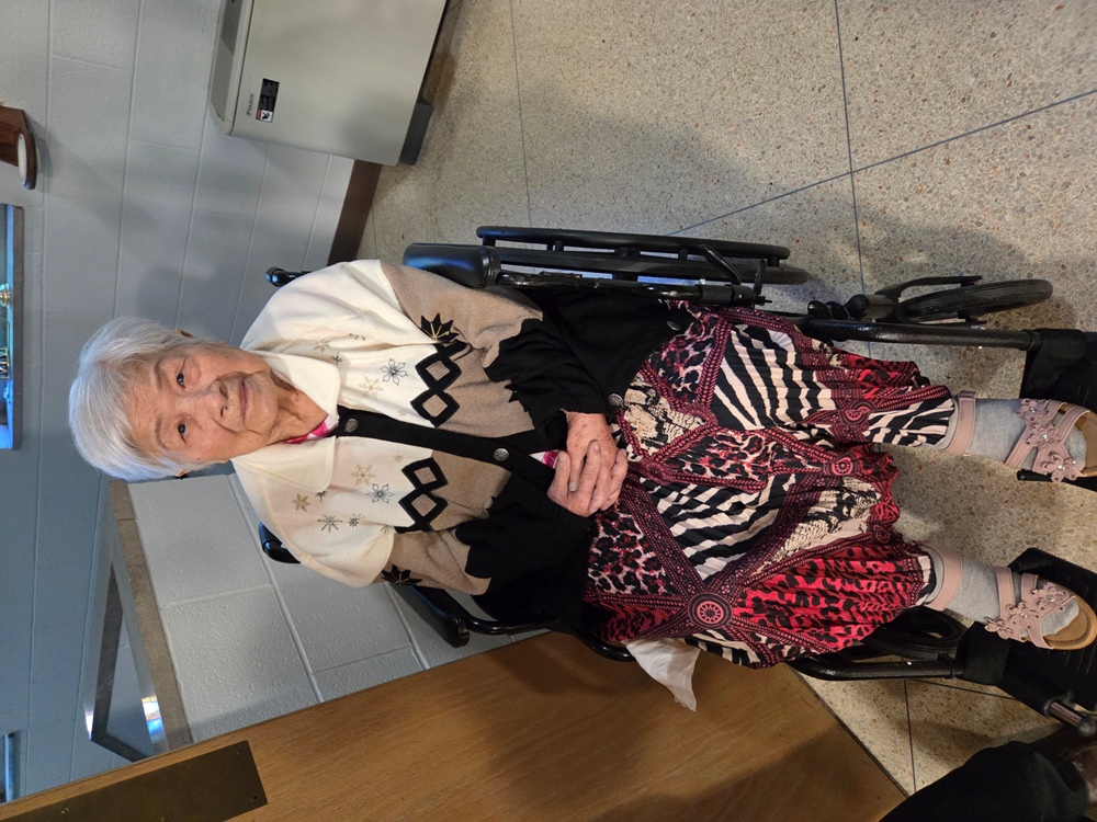 Bà cố của vị tân Lm Nguyễn Tri Kỷ, CRM, đang dự lễ tạ ơn của con mình, như bà đã dự lễ mở tay của ngài hôm Thứ Hai mùng 9/6/2025 từ buồng áo nhìn ra
