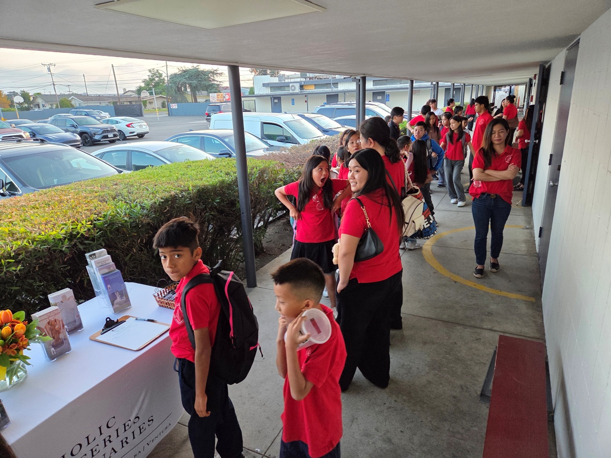 Các em dự TNF ở Cộng đoàn LTXC Giáo xứ Thánh Anthony San Gabriel tập trung để xếp hàng vào nhà thờ tham dự Thánh lễ