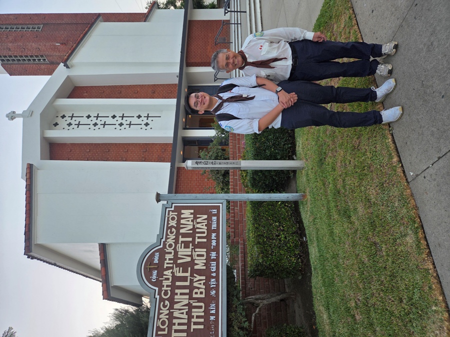 Em Quách Michael, con của cựu Huynh trưởng Trâm, Đoàn TNF SG, Đoàn trưởng của Đoàn TNF tân lập của Cộng đoàn LTXC San Gabriel