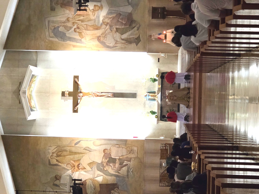 Sau khi đọc kinh và thu dọn Nhà nguyện, nơi được gọi là Nhà nguyện bán công, cho giáo dân vào tham dự phụng vụ Thánh thể (Thánh lễ),