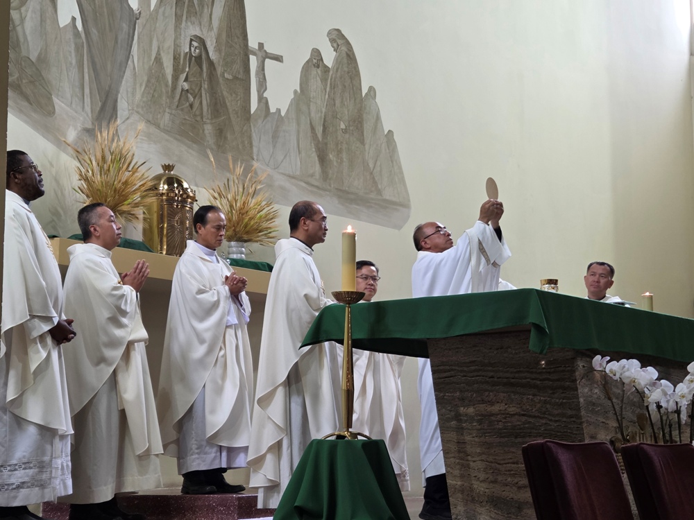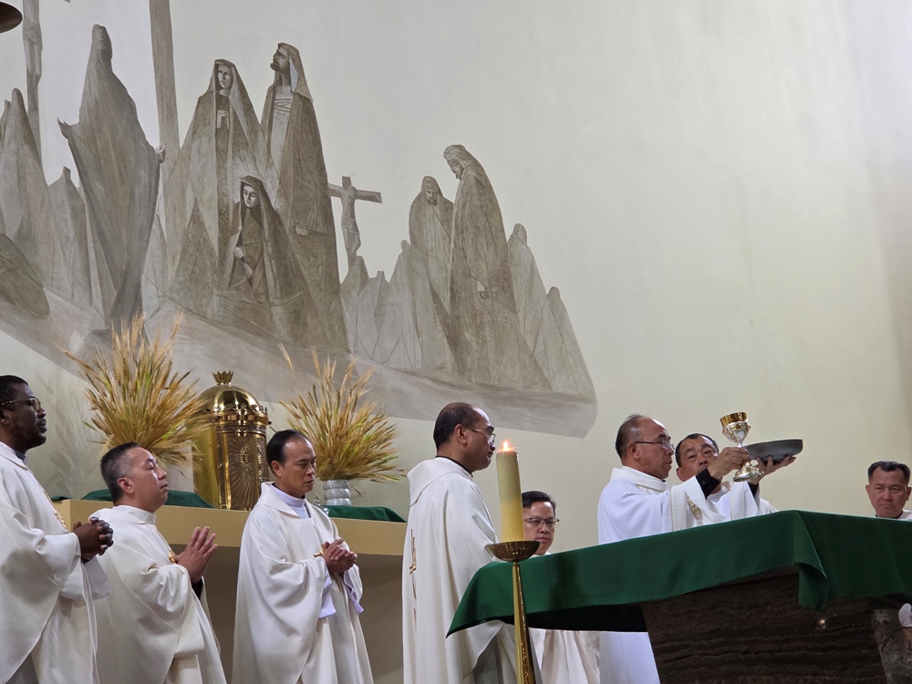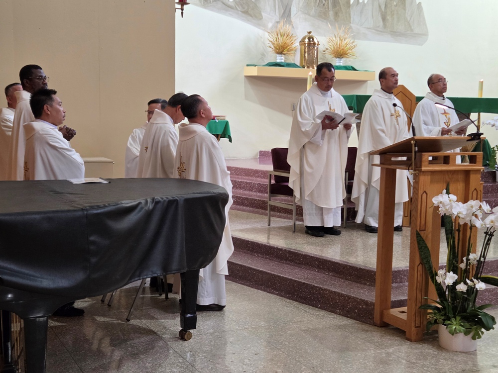 Linh mục đoàn (trên) cùng toàn thể cộng đồng phụng vụ (dưới) cùng đọc kinh cầu cho chung quý linh mục