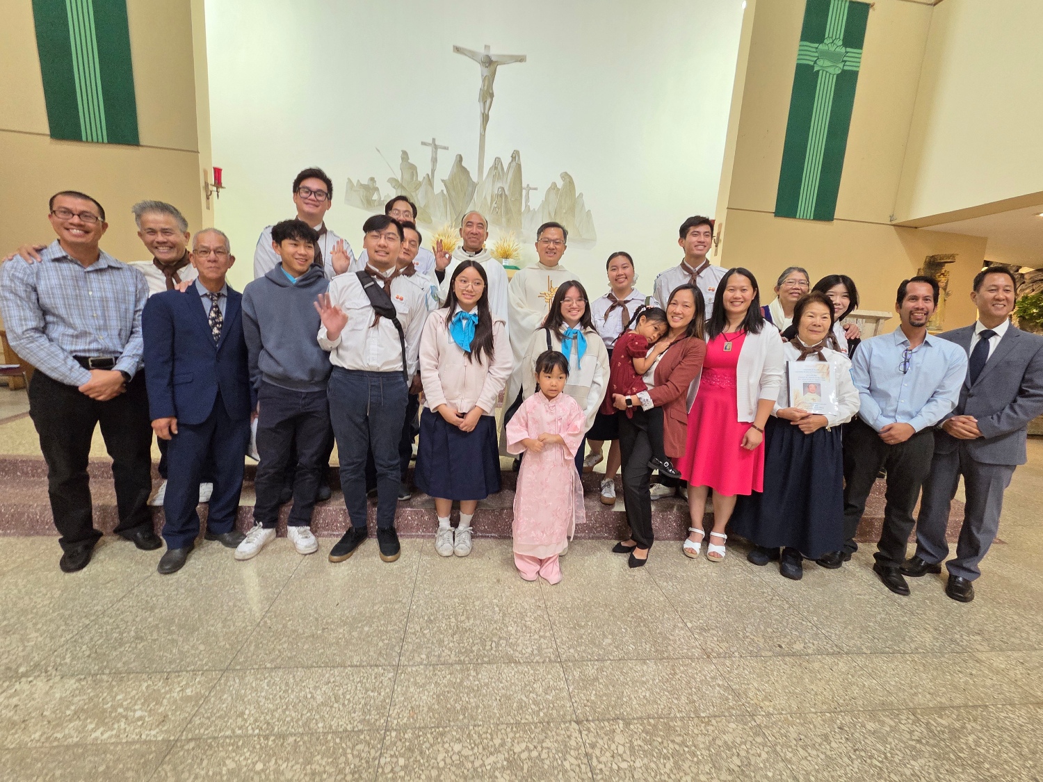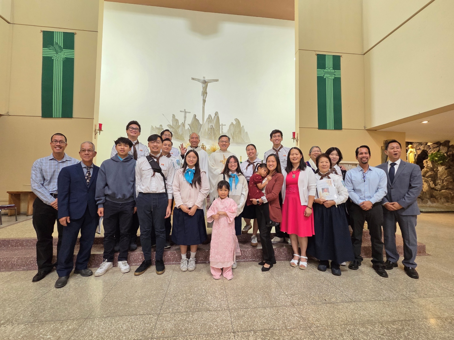 Toàn bộ TNF tham dự Thánh lễ tạ ơn cho Đoàn TNF tân lập ở Cộng đoàn LTXC ở Giáo xứ Saint Anthony San Gabriel TGP Los Angeles