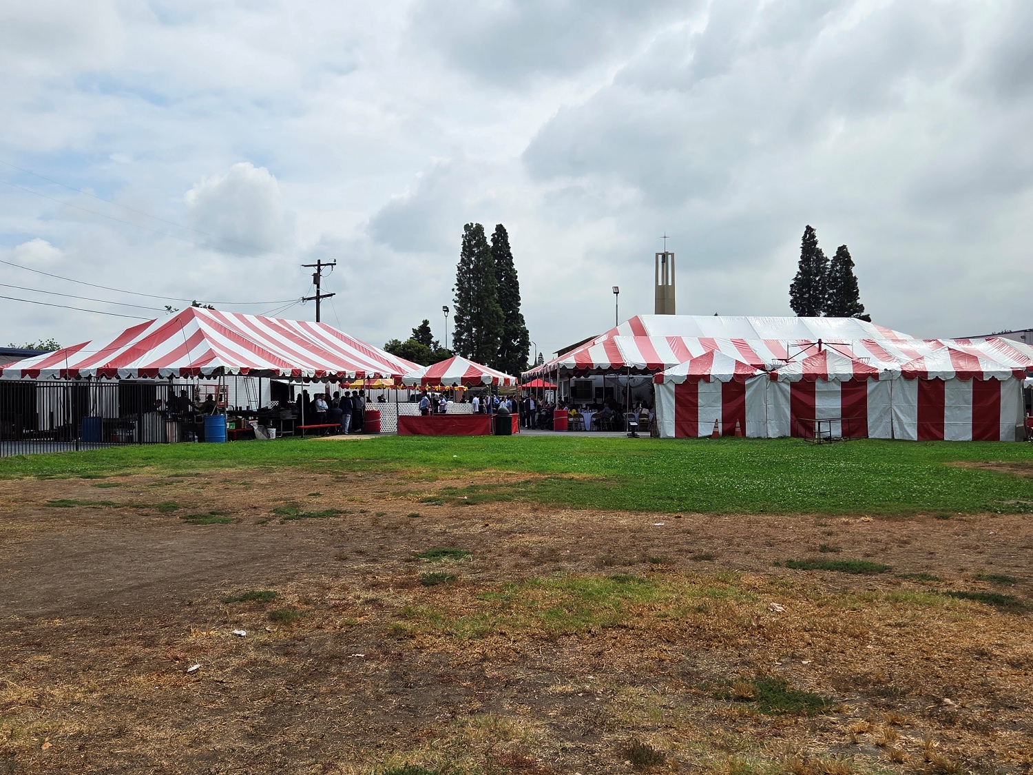Tiệc tùng muốn tổ chức ngoài hội trường của Giáo xứ thì chỉ bằng cách thuê lều bạt và bàn ghế (trên) cùng nhà hàng nấu tại chỗ (dưới) là xong
