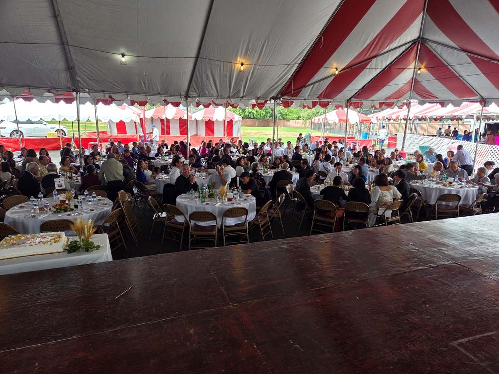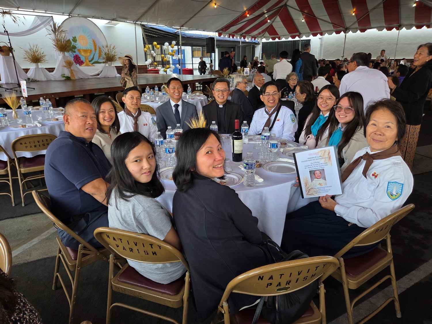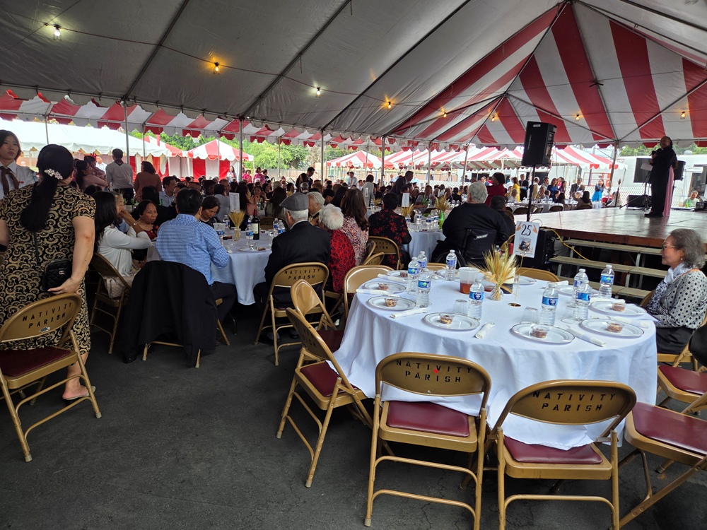Bữa tiệc mừng Cha Kỷ rơi vào lúc Giáo xứ đang cần Hội trường để sửa soạn cho Feasta sắp tới nên phải sử dụng lều được sắp xếp cho Feasta của Giáo xứ.