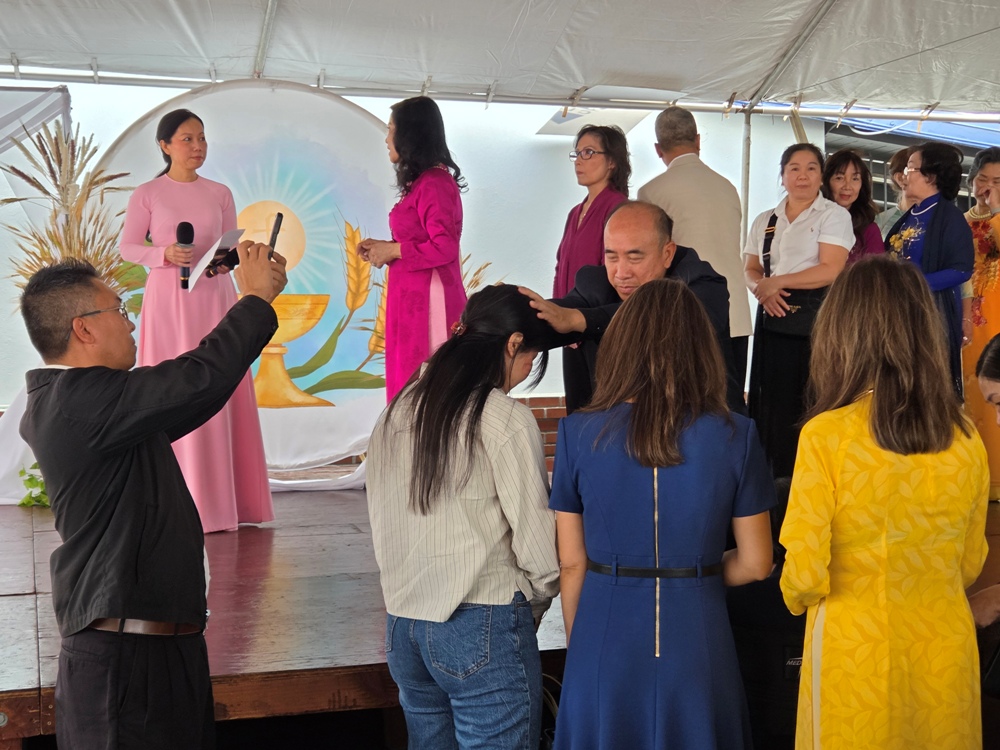 Trước khi phép lành cuối lễ, Cha Nguyễn Huy Bảo, Tuyên úy của LĐ TNF TGP LA,