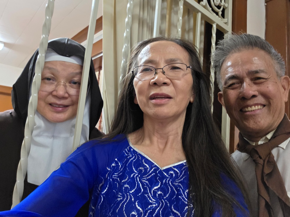 Chiều hôm nay, khi tôi vừa xuống máy bay lúc 5:30 pm thì Sơ Đặng Kim Nhung, OCD, gọi điện thoại cho tôi sau 2 ngày tôi để lại lời nhắn ở điện thoại Đan viện của Sơ và sau cả tuần email cho Sơ. Sơ đã nhận lời hẹn gắp Sơ của chúng ta khoảng từ 1:30 - 2:00 pm Thứ Bảy 27/9/2025. Tạ ơn LTXC.