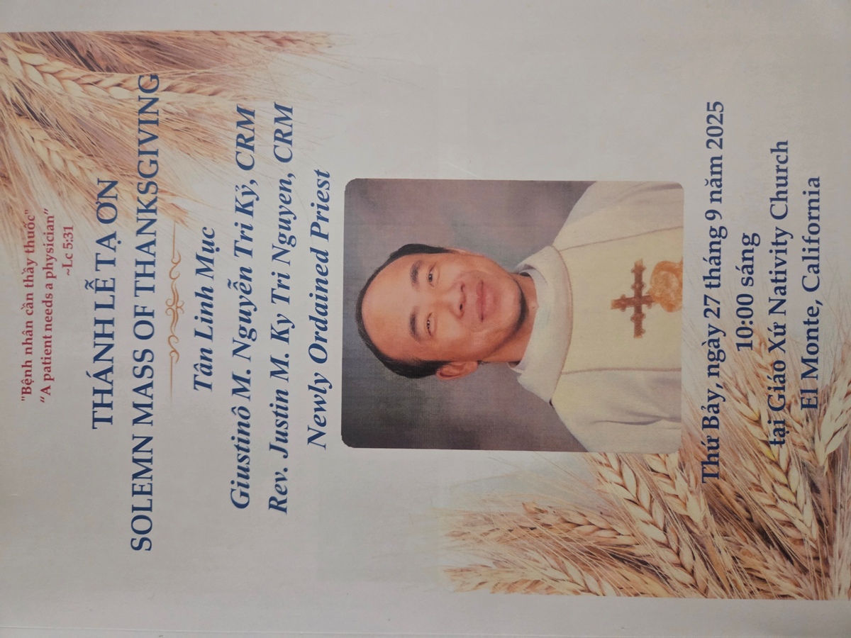 Dưới đây là Thiệp mời của Cha Nguyễn Tri Kỷ, CRM, được tôi phổ biến cho chung TNF ngay từ khi nhận được thiệp mời của Cha. Tuy nhiên, nếu chúng ta tham dự tiệc mừng sau Thánh Lễ thì xin trả lời cho gia đình của ngài để bữa tiệc mừng được mọi sự tốt đẹp nhé. Hạn chót vào ngày mùng 6/9/2025 như được ghi nhận trong thiệp phúc đáp ở cuối email này.
