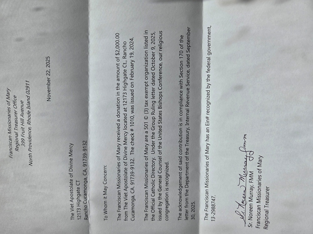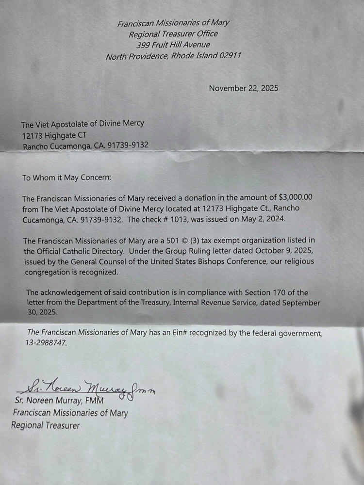 Cha ơi, con đang phục vụ Nhóm TĐCTT (Tông Đồ Chúa Tình Thương) ở Hoa Kỳ.
