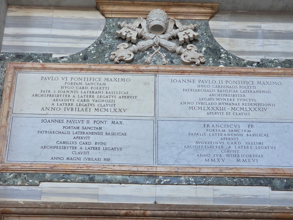 4 Năm Thánh còn được ghi lại ở bên trên đầu tường của Cửa Thánh, thứ tự như sau (từ trái sang phải và từ trên xuống dưới):