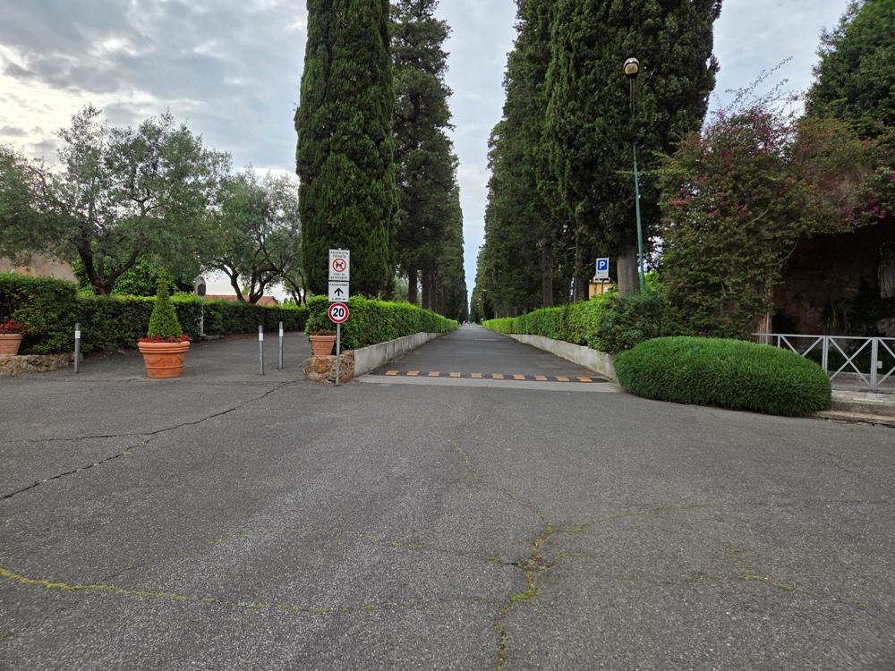 Từ trên khuôn viên khu vực dinh thự của Tòa Thánh xuống con đường dẫn sang Hang Toại đạo San Sabastianô