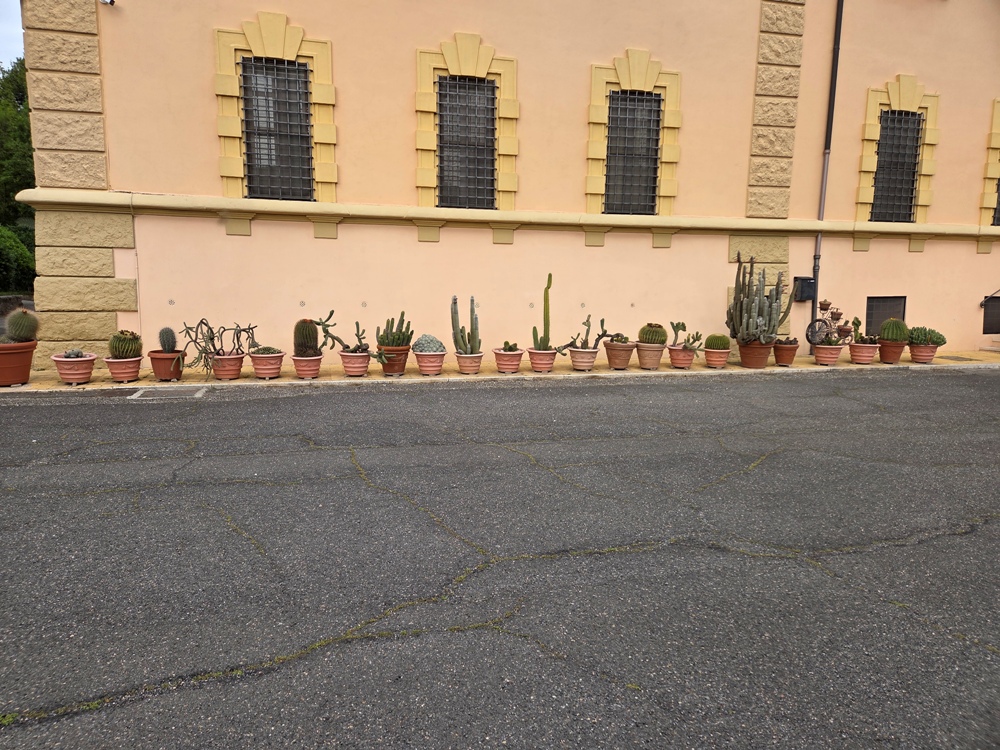 Viền suốt theo chân tường của dinh thực này là các thứ cây xương rồng đủ loại ở ngoài sa mạc