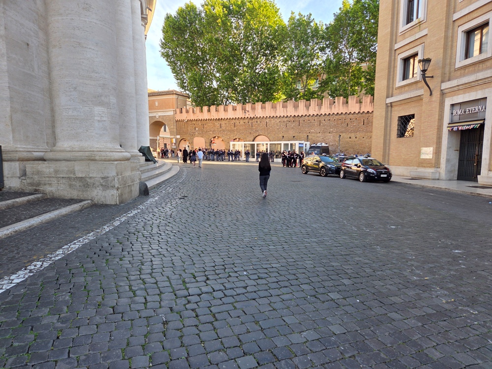 Để sang được phía bên trạm kiểm soát trước khi vào Quảng trường và Đền thờ Thánh Phêrô, phái đoàn phải tạt qua trạm lực lượng an ninh trực
