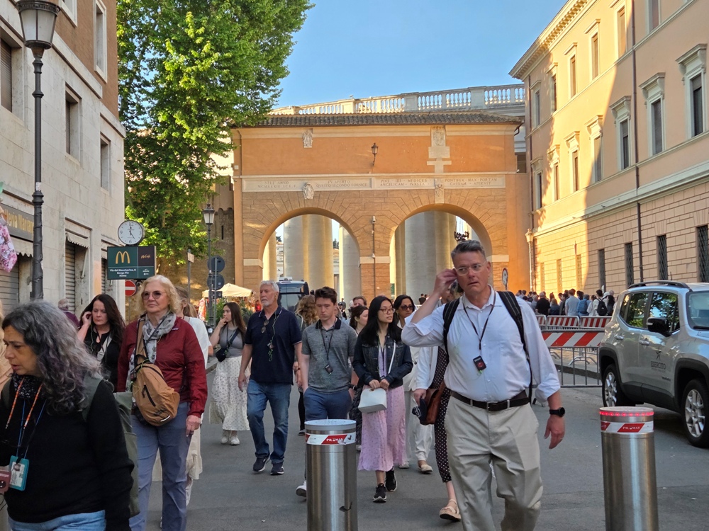 Phái đoàn TĐCTT từ 6:30 am đã đi chuyến xe buýt số 64 từ Roma Termini lên gần Quảng trường Thánh Phêrô ở phía bên này cầu