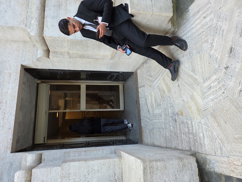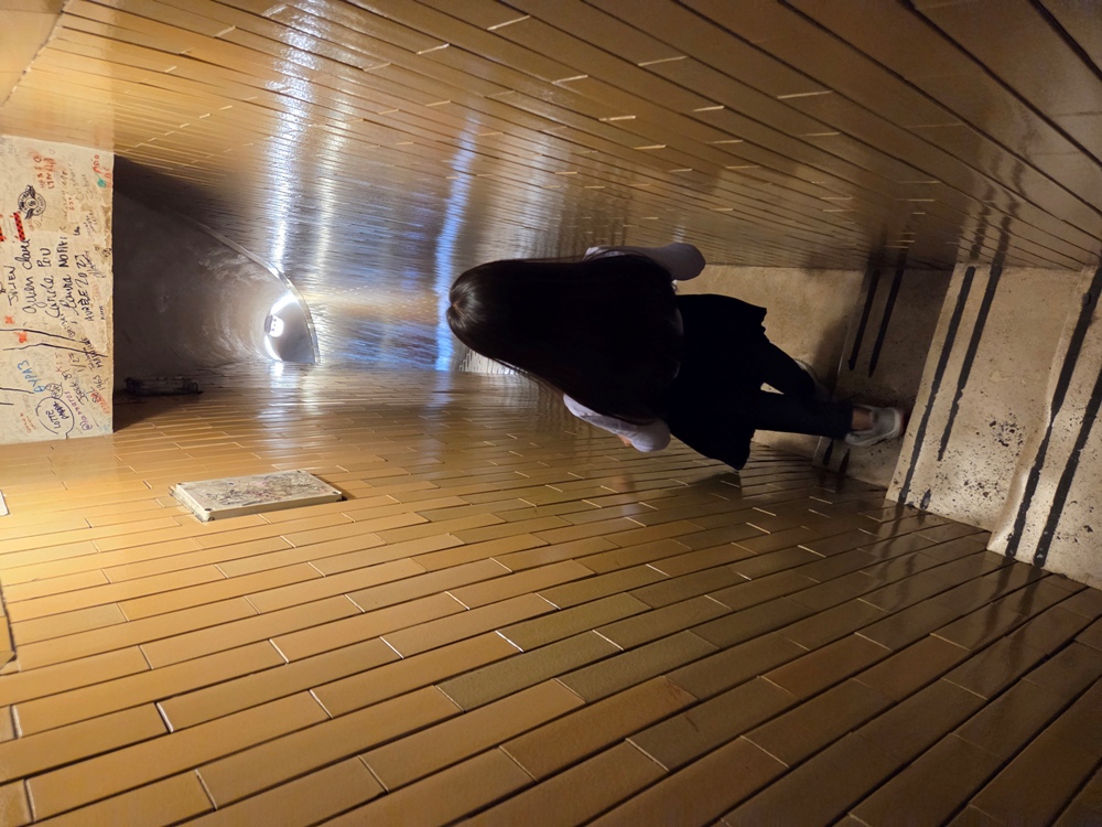 Tầm mức lưng chừng như lúc lên, trước khi vào thanh máy xuống ngay trong lòng Đền thờ