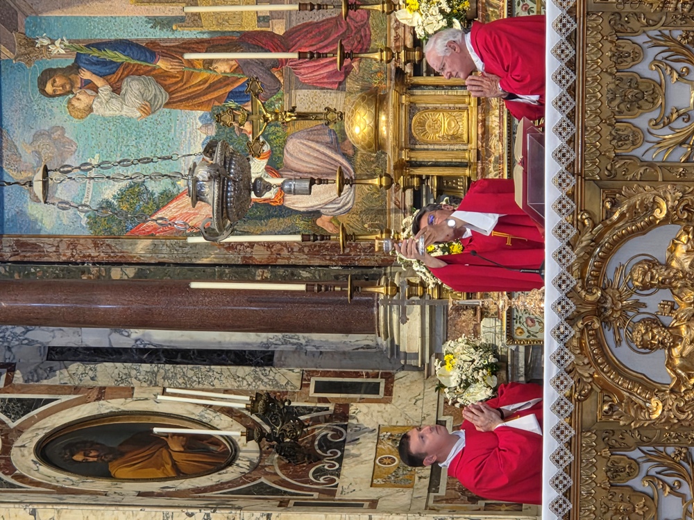 Nếu hôm Thứ Bảy mùng 3/5, phái đoàn TĐCTT đã lên tham quan Vòm cung của Đền thờ rồi xuống tham dự Thánh lễ lúc 9 giờ ở Gian Bàn thờ Thánh Giuse,