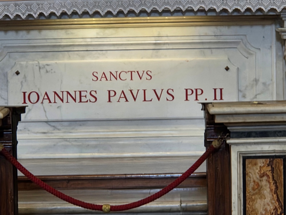 ở cuối bên phải từ cuối Đền Thờ lên, trước Gian mộ của Thánh Gioan Phaolô II