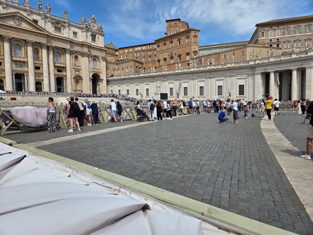 Hàng ngũ dân Chúa đã xếp hàng dài ngay từ sớm dọc theo các dinh thự của Tòa Thánh, gần cổng chính ra vào Thành Vatican
