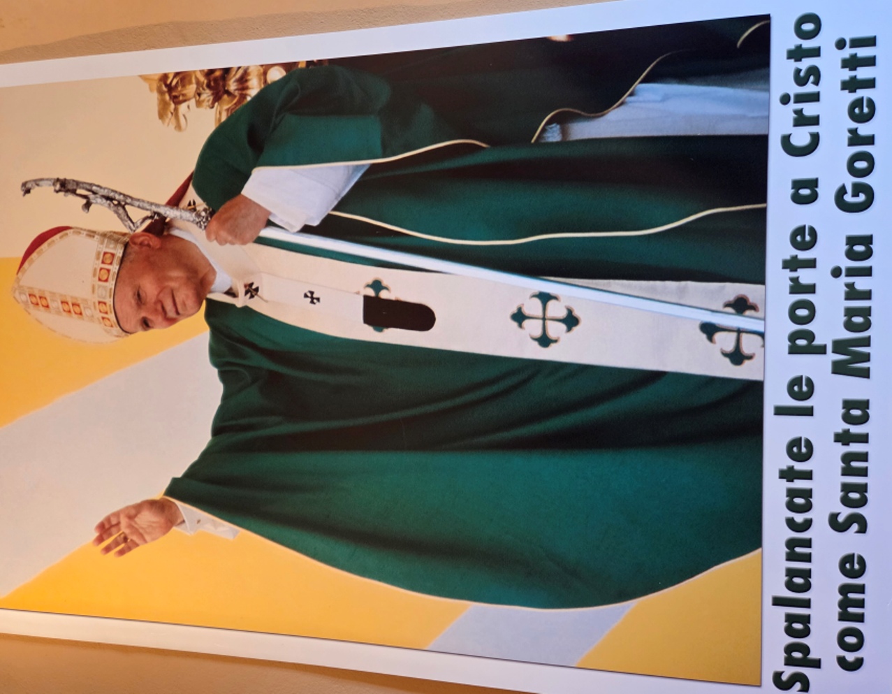 "Spalancate le porte a Cristo come Santa Maria Goretti - Hỡi Thánh Maria Goretti xin giúp chúng tôi mở rộng các cửa cho Chúa Kitô, "