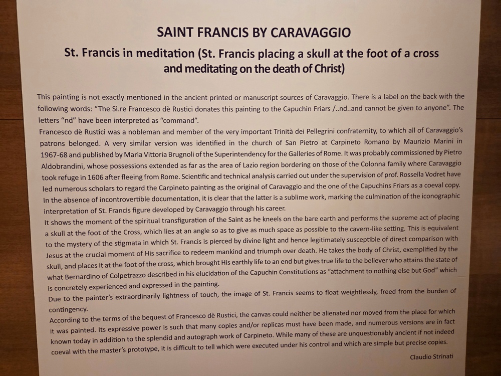 Trong số các thứ được trưng bày có những bức họa tinh hoa, bao gồm cả bức họa Thánh Phanxicô trong Trầm Niệm của Caravaggio,