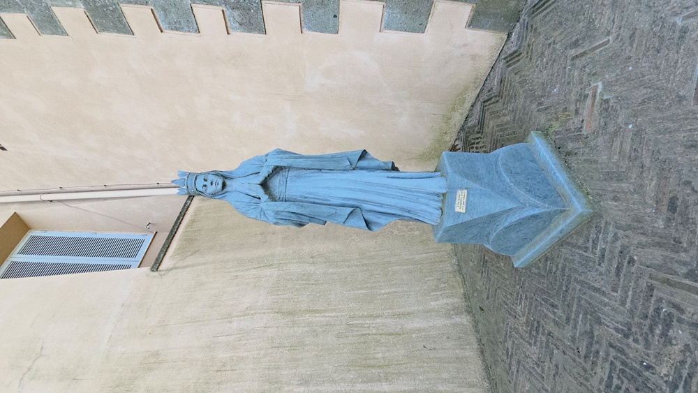 Ở dưới chân tượng Đức Mẹ ở Khu vườn trên là "A Sua Sacrita - Một Suối Thiêng"