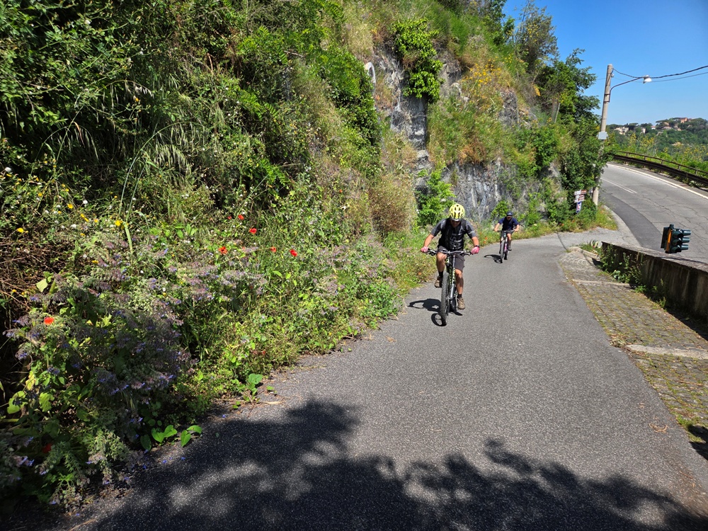 Có những tay chuyên nghiệp địa phương đạp xe lên dốc thay vì bộ hành như phái đoàn TĐCTT hôm ấy...