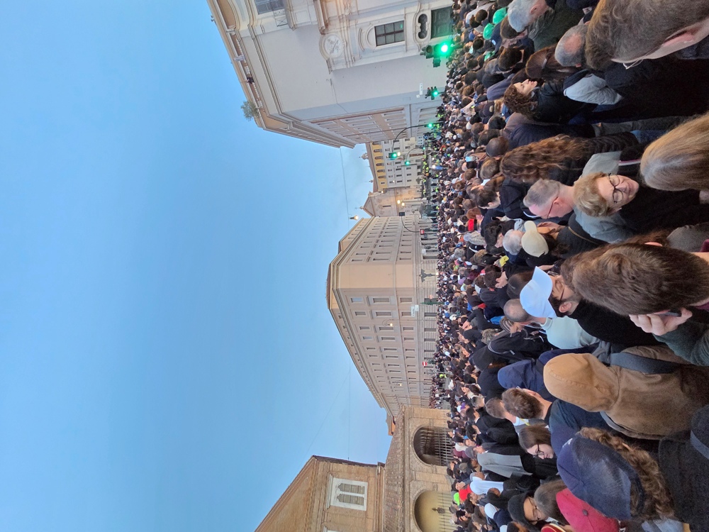 nhưng cứ tiến từng chút một suốt từ lúc 3 ruỡi sáng tới gần 9 giờ sáng mới tới được vị trí gần Quảng Trường Thánh Phêrô nhất, rồi cứ thế đứng suốt thánh lễ tới hơn 12 giờ trưa.