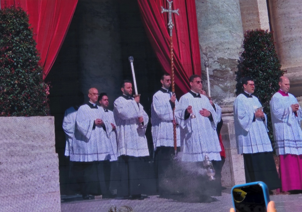 Cũng như lần trước, năm 2014, lần này, 2 TĐCTT đại diện chung Nhóm tham dự Lễ An táng Đức cố Giáo hoàng Phanxicô cũng bị áp lực của đám đông đun đẩy đi theo đám đông.
