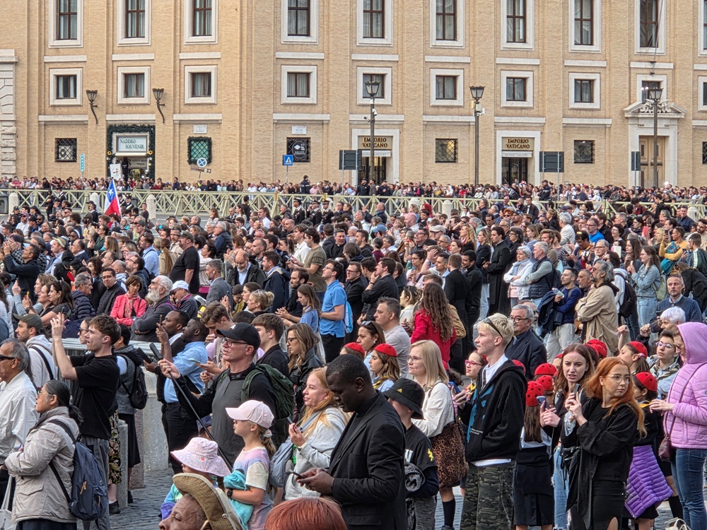 Sau đó lại xếp hàng vào Quảng trường Thánh Phêrô để tiếp tục theo dõi ban chiều kết quả bầu chọn vị tân Giáo hoàng của Mật nghị Hồng y