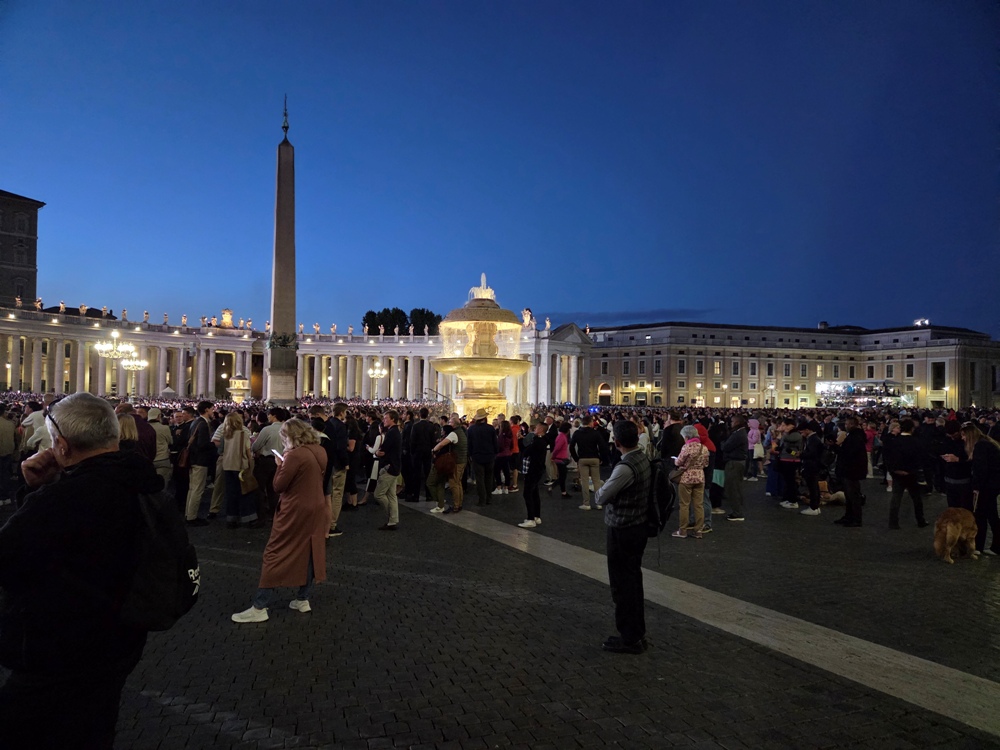 Bầu trời vẫn trong sáng tươi đẹp vào lúc 7 giờ tối trên Quảng trường Thánh Phêrô,