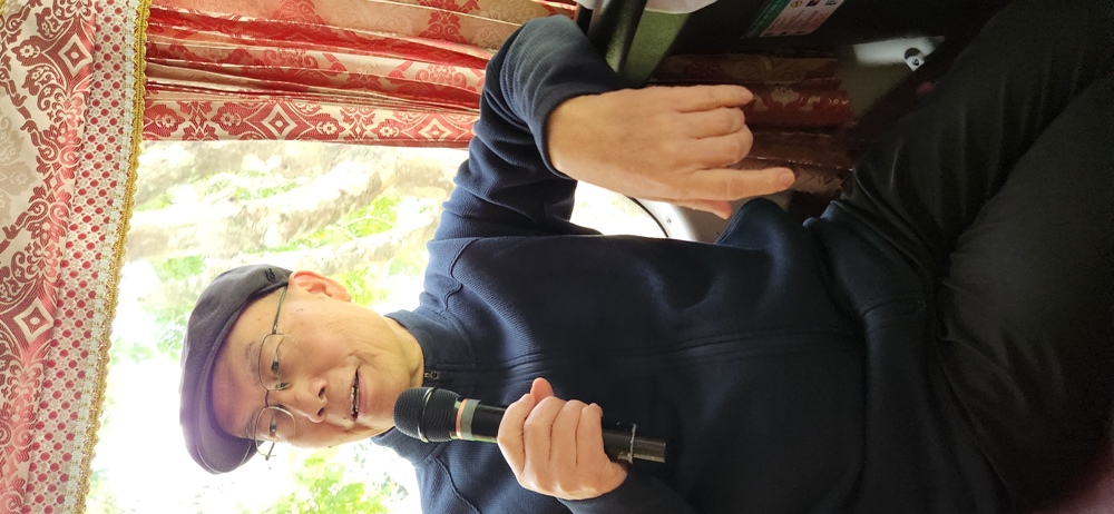 Cha Phó xứ vừa về đến chào phái đoàn TĐCTT và đồng thời cũng là vị linh mục ban phép lành lên đường ở trên xe cho phái đoàn