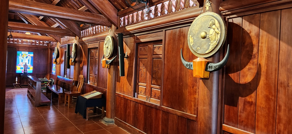 được kiến trúc theo văn hóa Người Mường, dựa trên gợi ý của ĐTGM Ngô Quang Kiệt