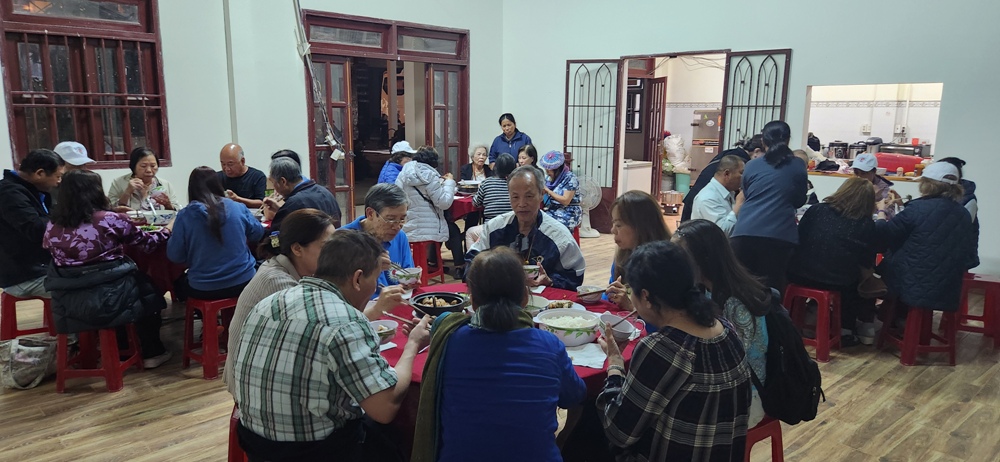 Bữa trưa tại Trụ sở Truyền giáo của Quý sơ MTG Hưng Hóa ở gần Nhà thờ Giáo họ Hàm Rồng
