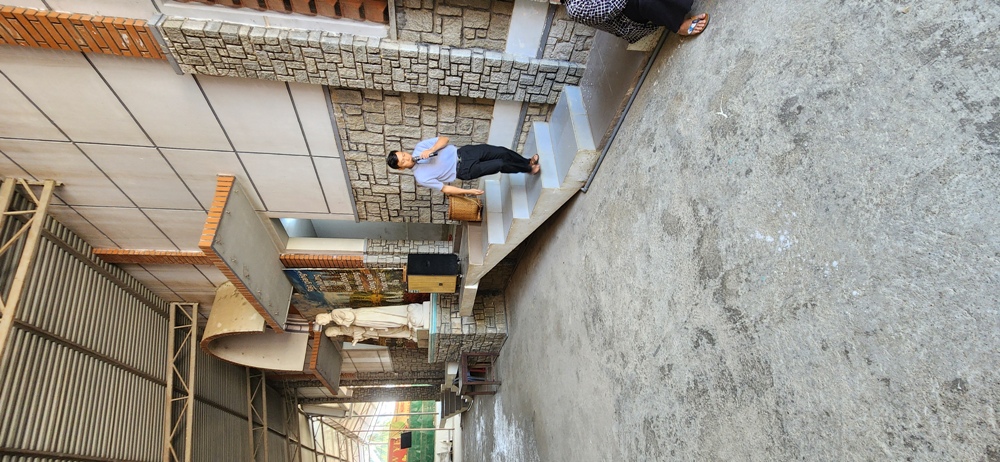 Ngôi nhà tàn tệ ở ngay bên trái của cổng lên Nhà thờ Giáo họ Truyền giáo Đồng Bầu