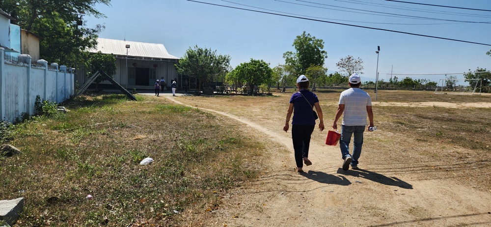 Viếng Thánh Thể sau khi tặng quà cho các em thiếu nhi rồi trở về trụ sở các sơ và trở ra xe của phái đoàn