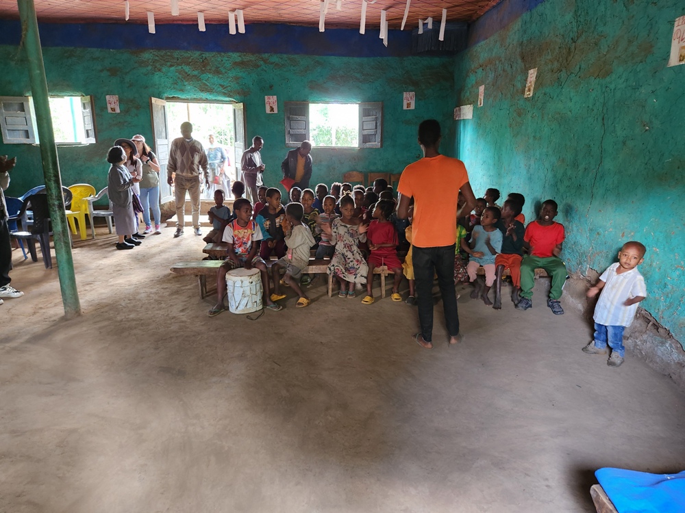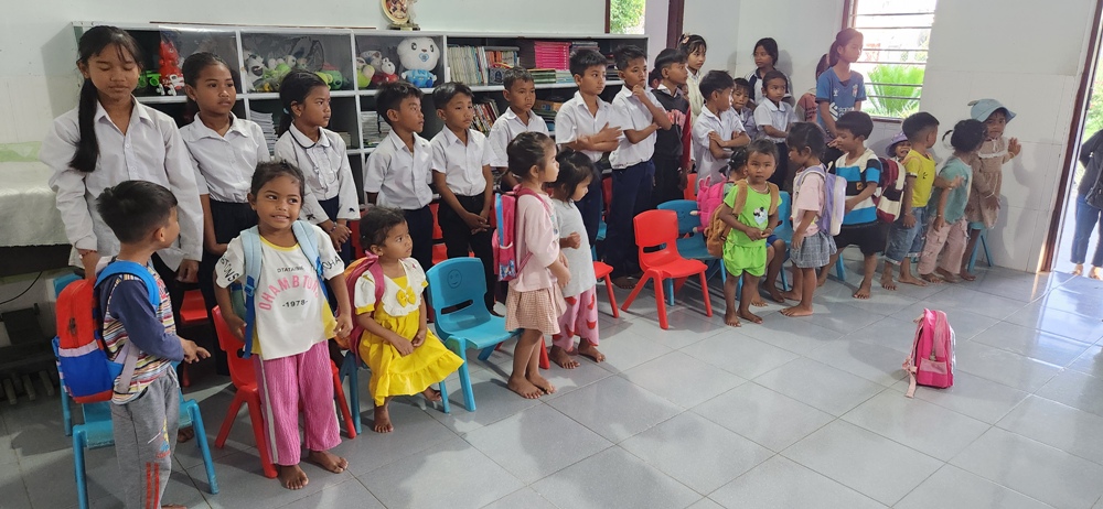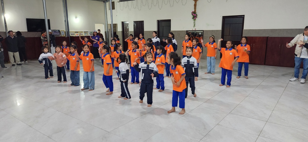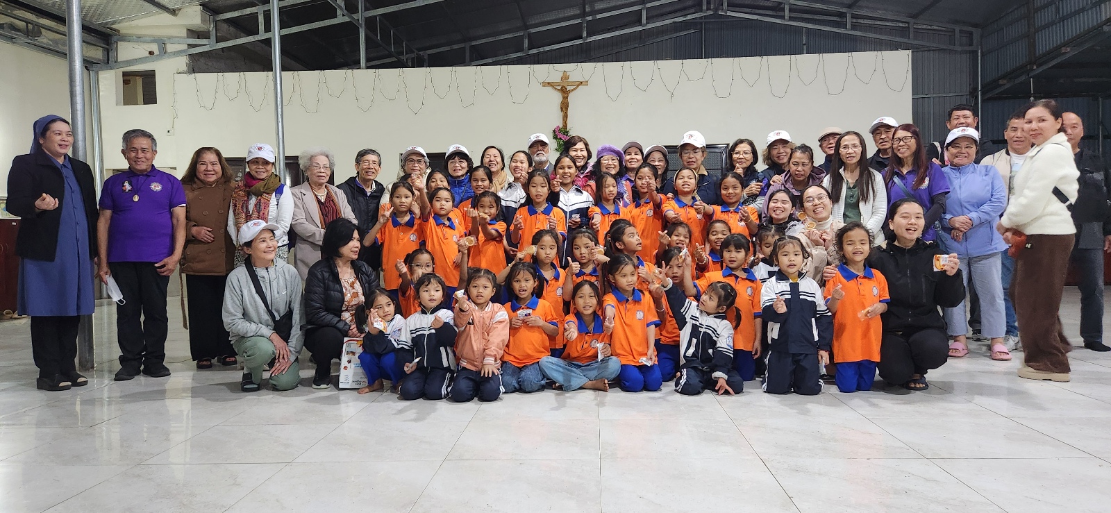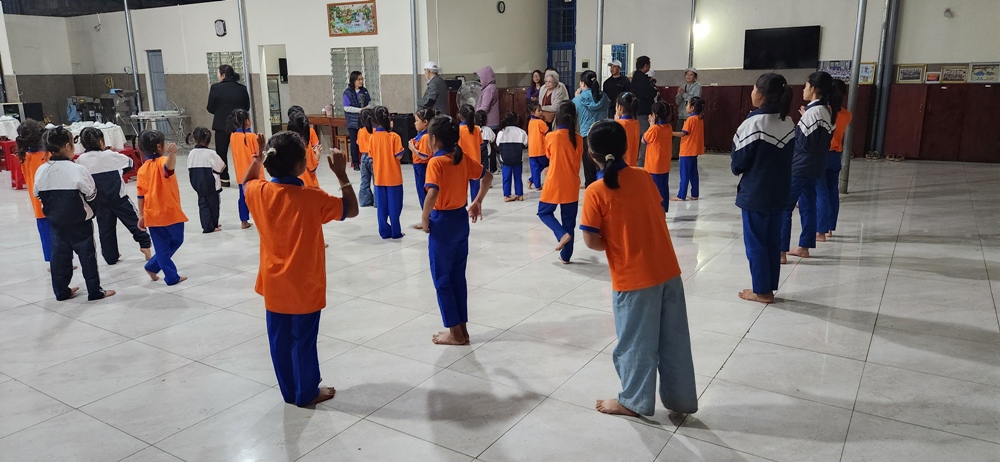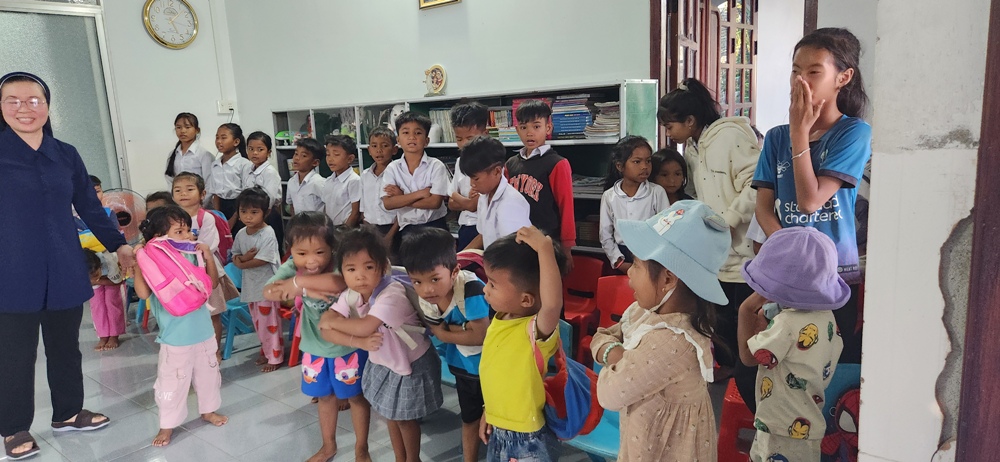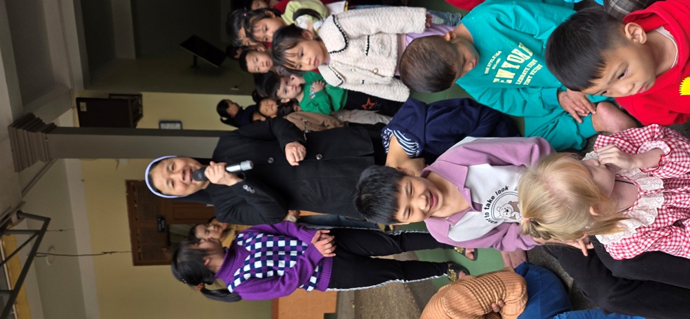 Bấy giờ là lúc các em gần tan học ban chiều nên các em lớn nhỏ đã được quý sơ tập trung lại để chào đón phái đoàn bằng 1 bài hát