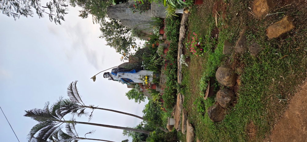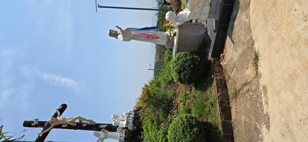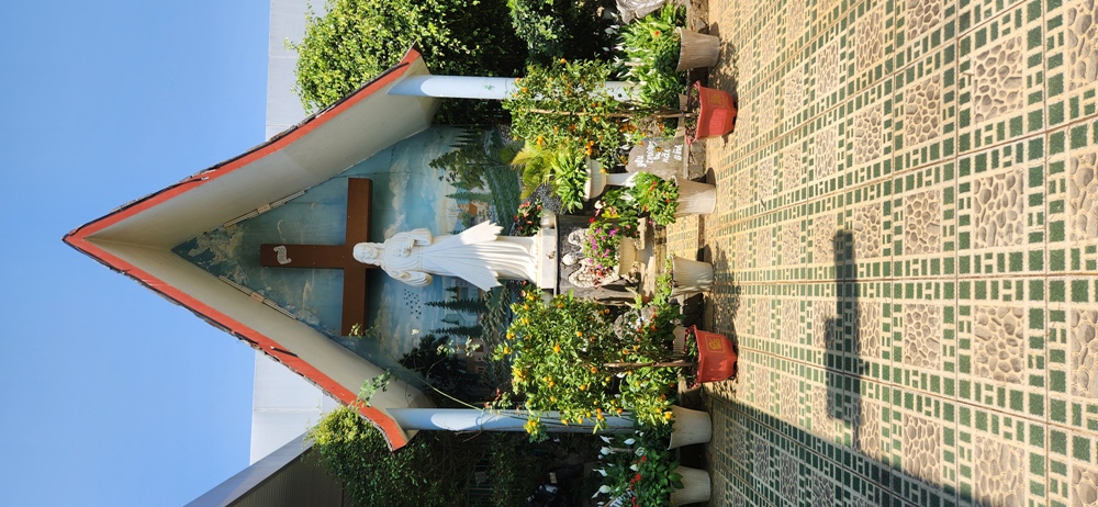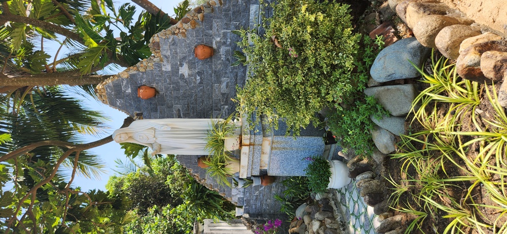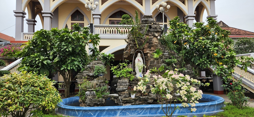 Ở đằng sau nhà có Đài Đức Mẹ Fatima và một giòng suối nước