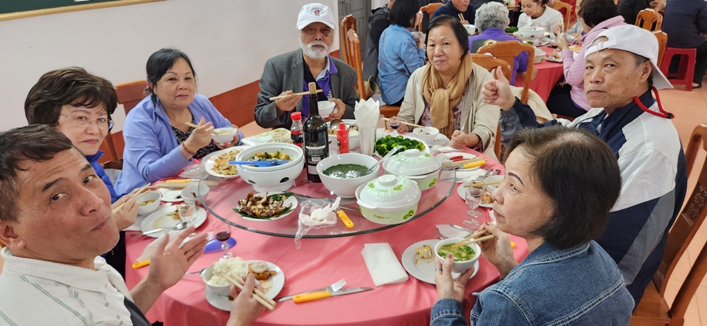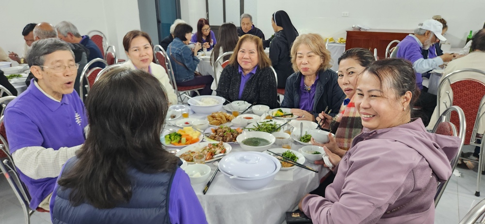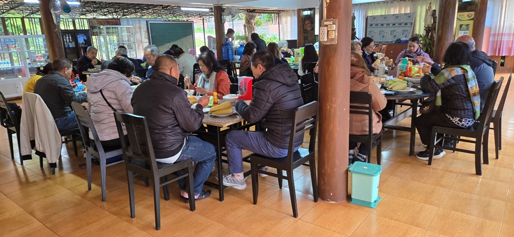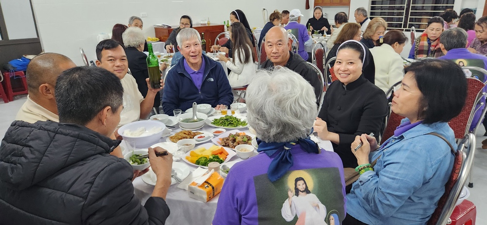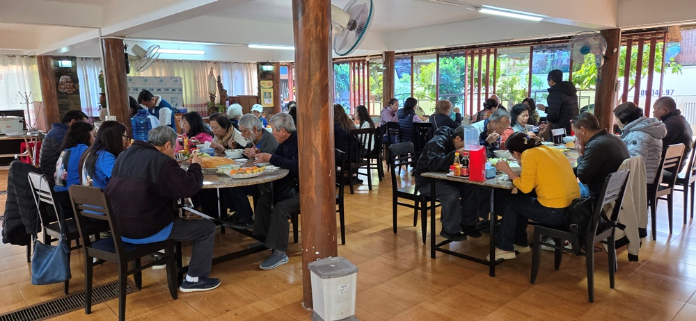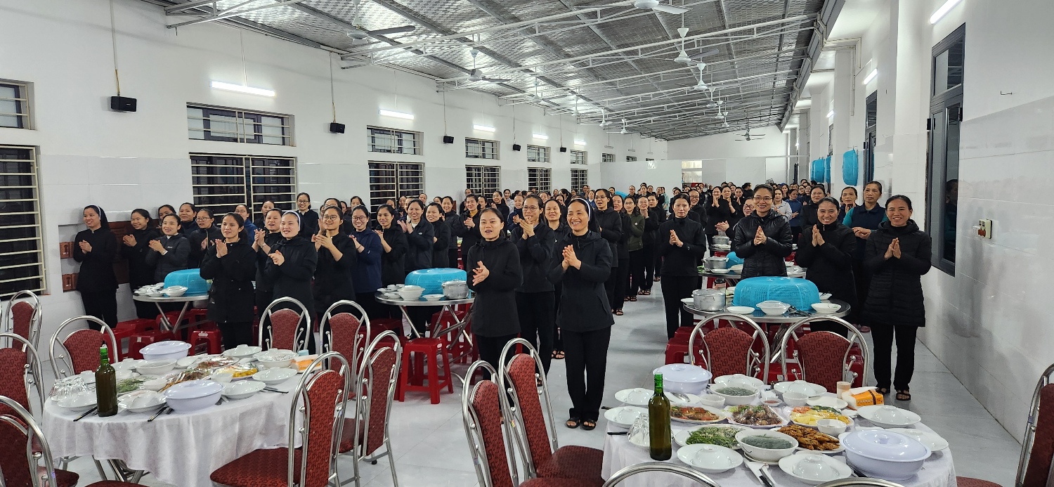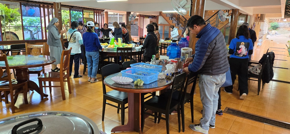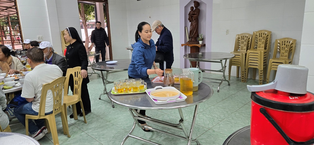 Bữa trưa quý sơ tiếp phái đoan TĐCTT ở cùng nơi và vào cùng giờ dùng bữa của quý sơ đang chờ phái đoàn tới