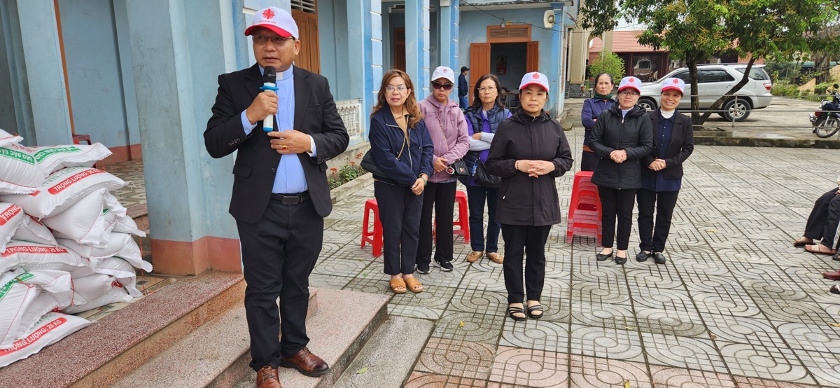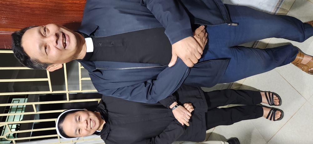 Đi với Cha có Sơ Hồng Điểu, Dòng MTG Vinh, là thư ký của Văn phòng Caritas Giáo phận Hà Tĩnh