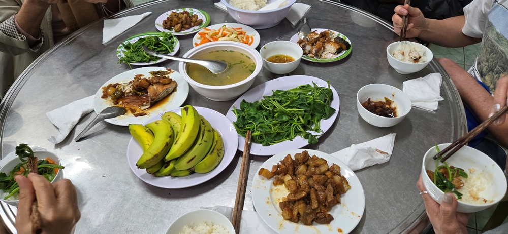 Sở dĩ bữa cơm nào ở VN cũng ăn ngon và ăn nhiều hơn ở Mỹ, dù không đặt món như ở nhà hàng, là vì các bàn tay nữ tu đồng trinh organic nấu dọn.