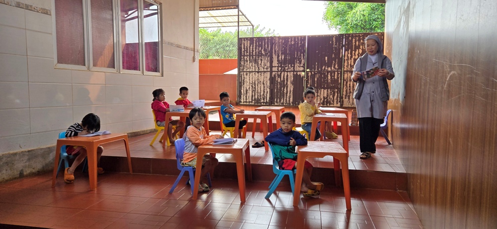 Nơi đây quý sơ chăm sóc các em dân tộc ban ngày để giúp cho cha mẹ trong giáo xứ an tâm làm việc