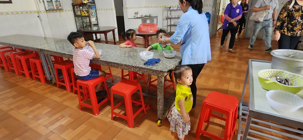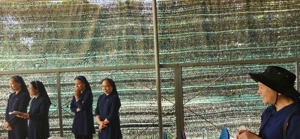 Trong khi các em đang trong giờ nghỉ trưa nhờ đó toàn bộ quý sơ ở đây mới tập trung lại tiếp đón phái đoàn