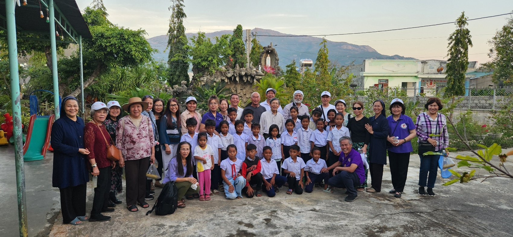 phái đoàn TĐCTT bộ hành mấy bước sang cơ sở phục vụ bác ái xã hội biệt lập của Quý Sơ Dòng Khiết Tâm Đức Mẹ ở đây