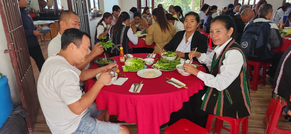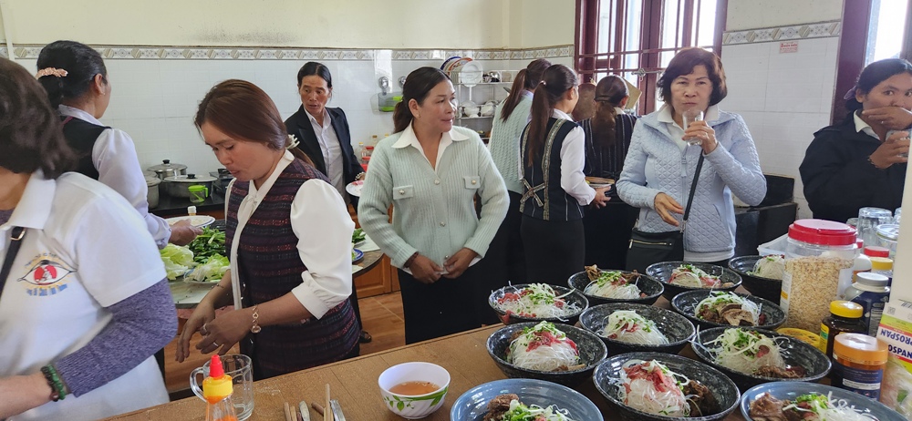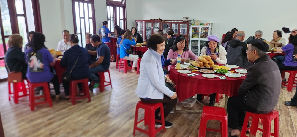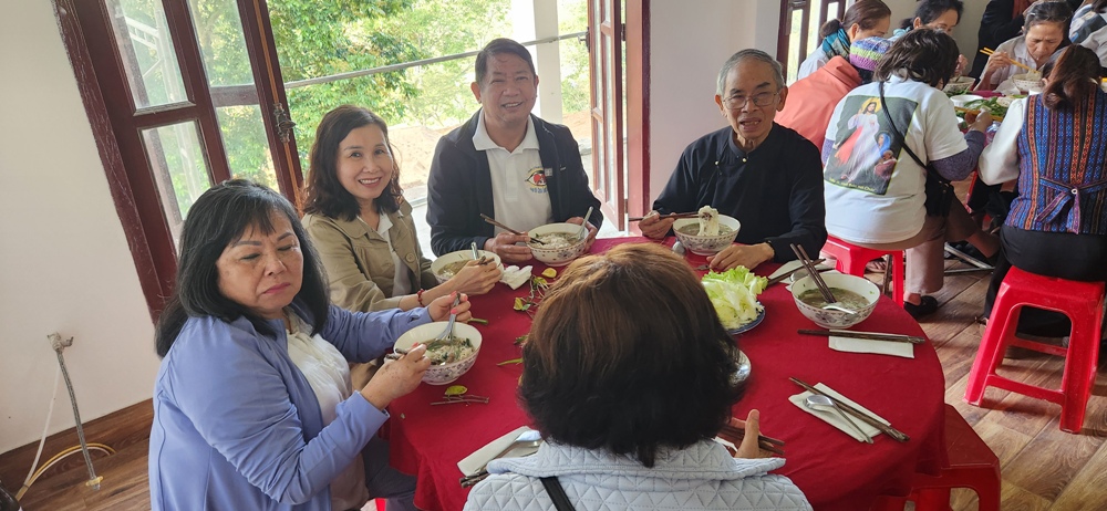 Cha Chánh xứ Huân làm phép bữa điểm tâm, một bữa điểm tâm bao gồm cả phái đoàn TĐCTT lẫn anh chị em dân tộc tham dự Khóa LTXC