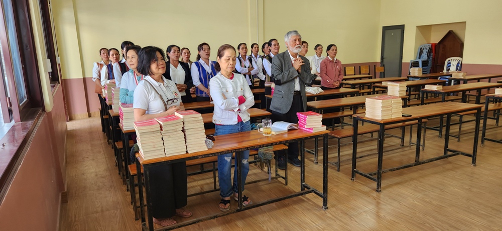 Quả thực Ngày Chúa Nhật 23/3/2025 và Thứ Hai 24/3 được LTXC an bài cho phái đoàn TĐCTT đã là một ngày nghỉ ngơi bất ngờ của chung phái đoàn sau 10 ngày (từ 13/3/2025) toàn là hành trình đường trường liên tục khá mệt mỏi, đồng thời cũng là một dịp để từng anh chị em trong phái đoàn chứng kiến thấy sức sống đức tin sinh động của anh chị em dân tộc thuộc Giáo xứ Truyền giáo Kala xa xôi hẻo lánh này trong Thánh lễ sáng sớm Chúa Nhật của họ, cũng như được thưởng thức một buổi tối kéo dài cả tiếng đồng hồ giao lưu văn hóa dân tộc độc đáo, nhất là được sinh hoạt với 50 anh chị em nồng cốt của Giáo xứ thuộc thành phần giáo lý viên và loan báo tin mừng, những người anh chị em hào hứng tham dự Khóa LTXC suốt cả một ngày, bao gồm 2 giảng huấn, 2 hội thảo và 2 chia sẻ cho đến nghi thức tuyên hứa vào buổi tối với 21 tân TĐCTT người dân tộc đầu tiên ở Việt Nam của Nhóm TĐCTT.