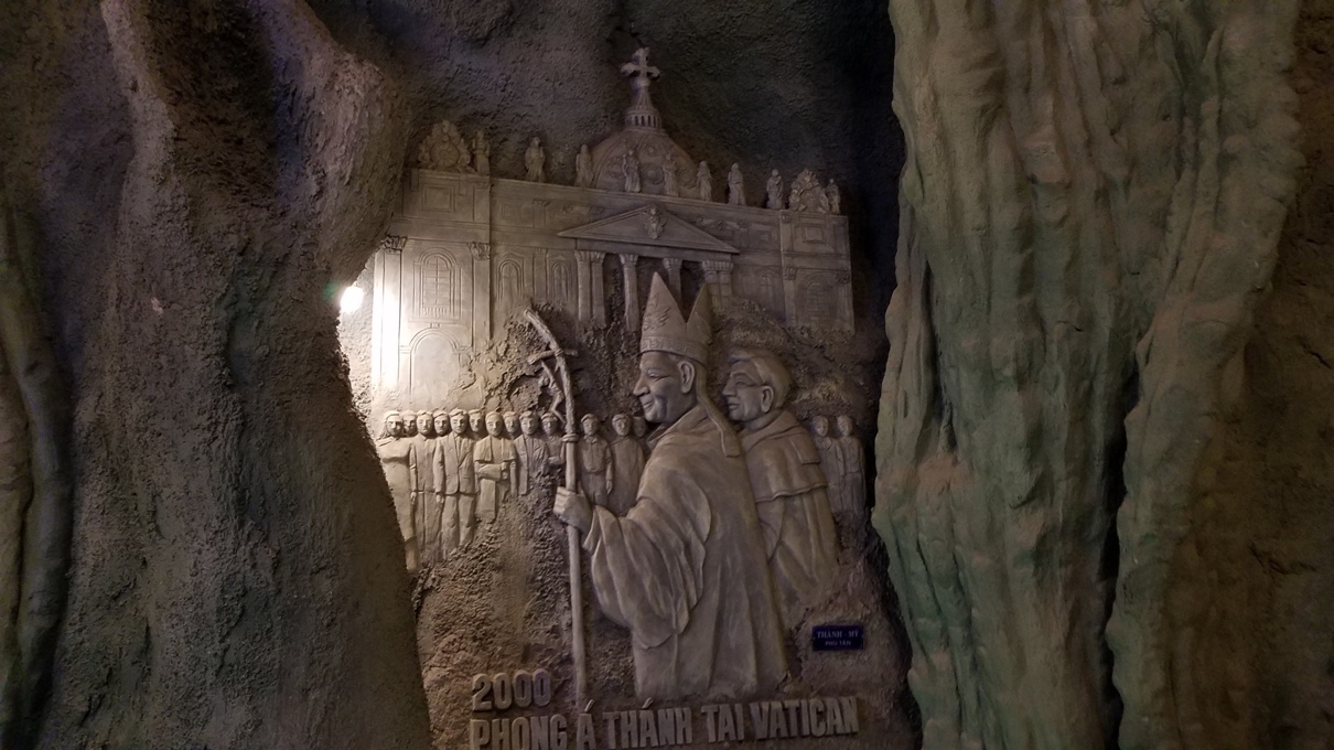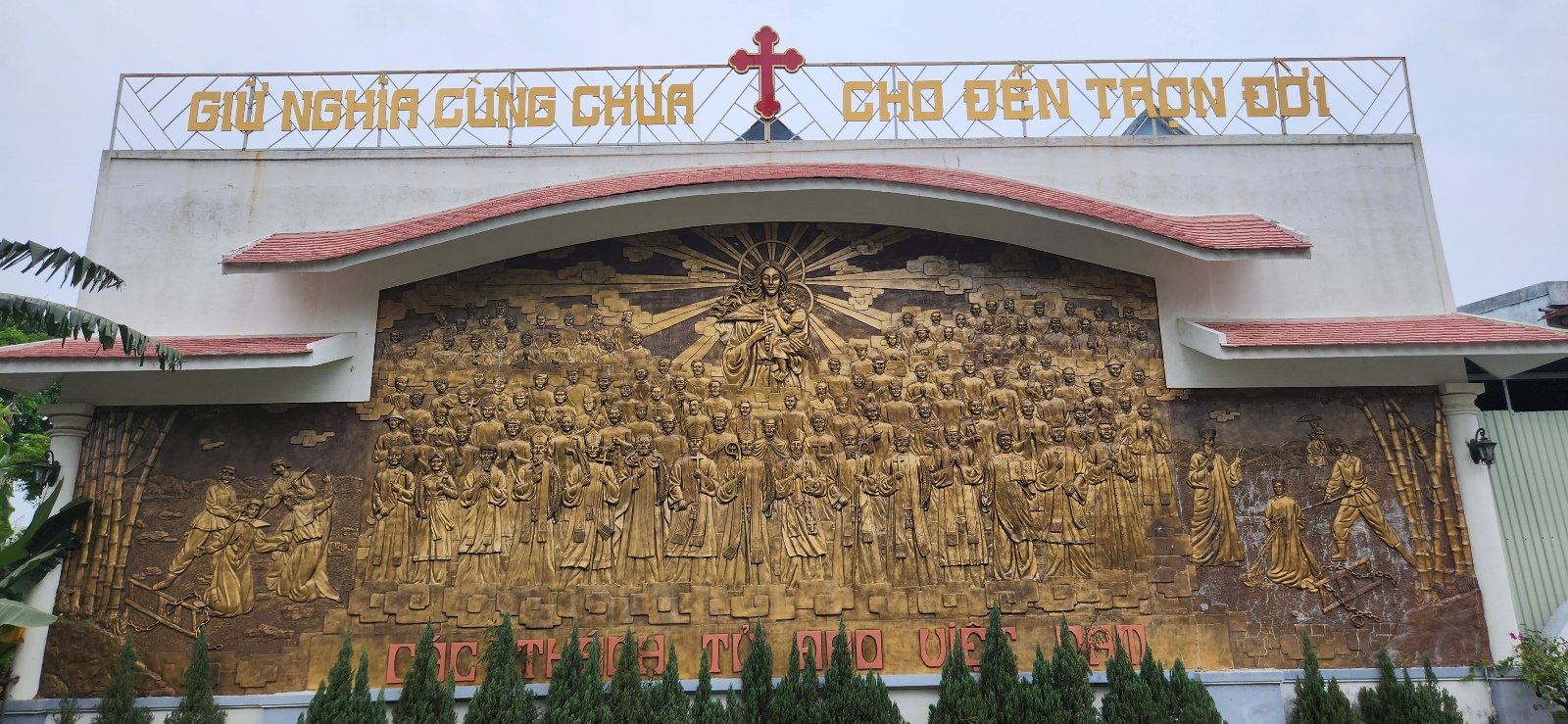 Các bức tường bao quanh Đền Thánh Anrê Phú Yên này cũng được sử dụng để tôn kính các Thánh Tử Đạo ở Việt Nam (trên và dưới)