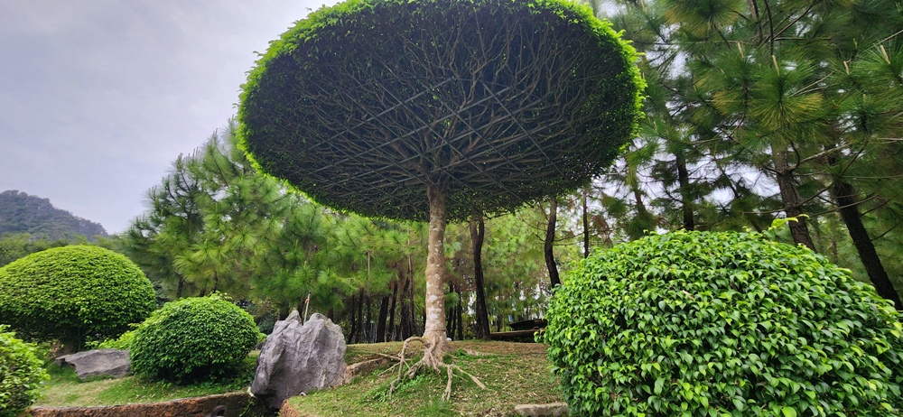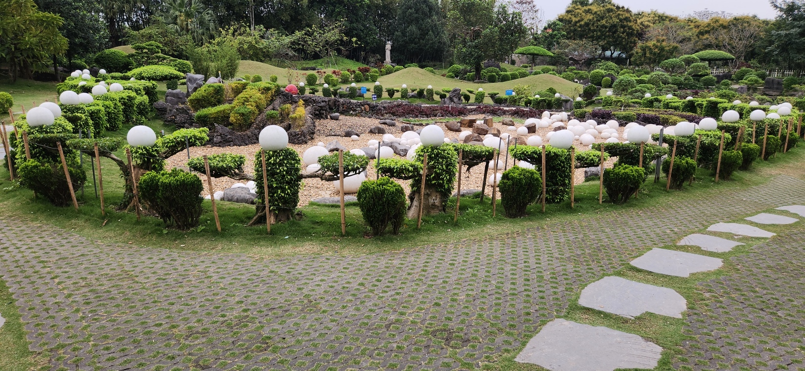 Trong thời gian kiến tạo, các tảng đá có hình thù đặc biệt đã được tìm kiếm mang về trưng bày đây đó cho ngôi vườn tăng thêm ý nghĩa