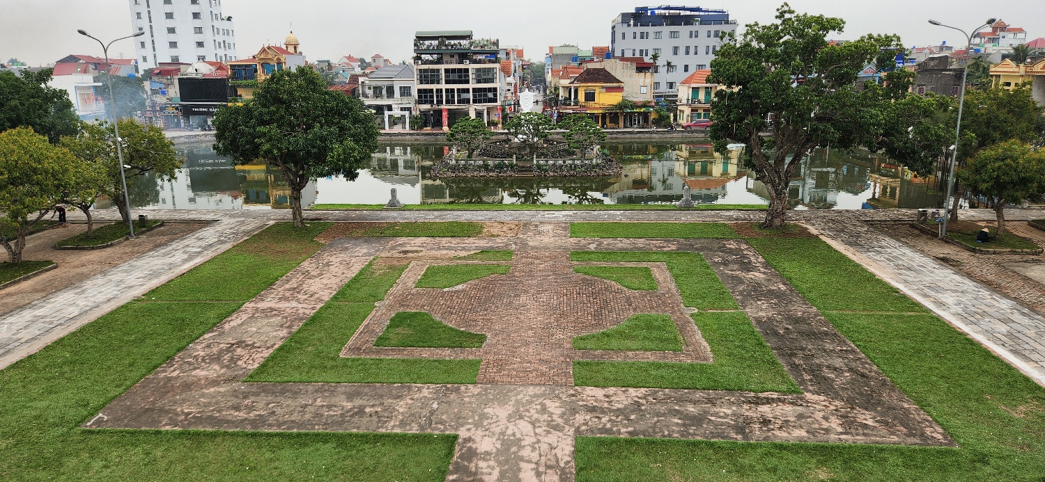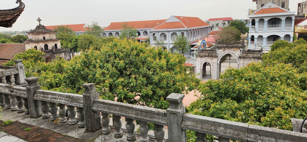 Có đứng trên Tháp chuông cao này mới thấy được (hình trên và dưới) toàn bộ quần thể 1 cầu trúc của khu Nhà thờ Phát Diệm lịch sử này