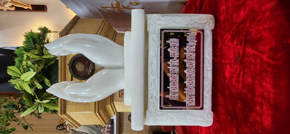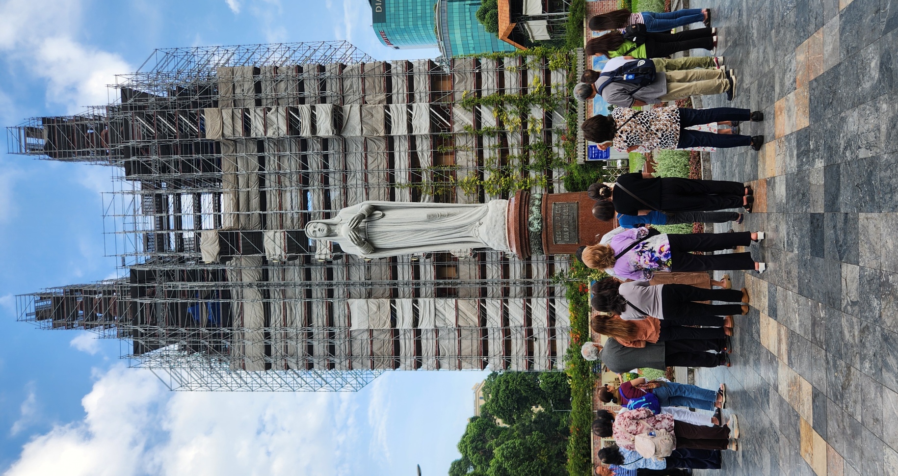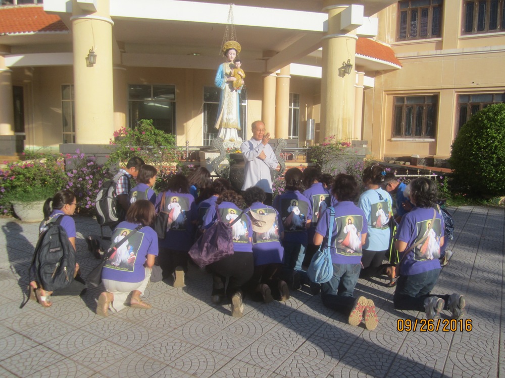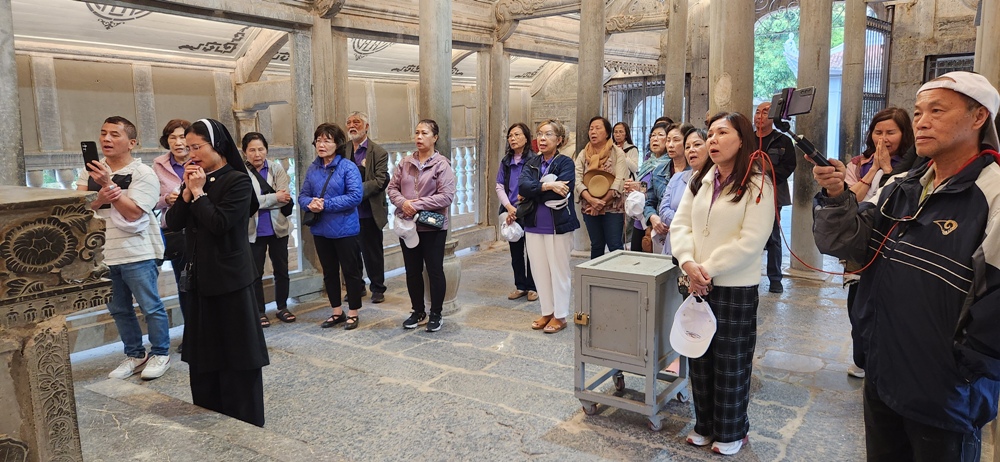 Cùng với vị nữ tu hướng dẫn viên hành hương quần thể Nhà Thờ Phát Diệm phái đoàn TĐCTT dâng lên Mẹ Maria lời cầu nguyện