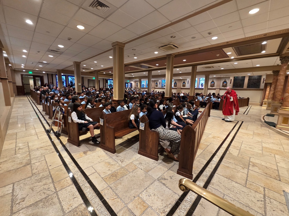 Thánh lễ trưa Thứ sáu này sở dĩ đông hơn ngày thường trong tuần là vì có học sinh của Trường Thánh Phêrô tham dự